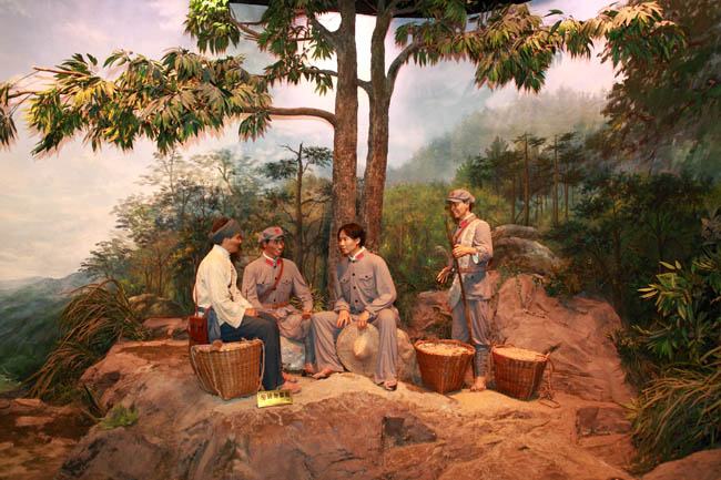 1928年10月,为了粉碎敌人的经济封锁,毛泽东、朱德等经常与井冈山军民一起往返一百多里到宁冈等地 挑粮上山:你可曾记得“朱德的扁?!?br style="padding: 0px; line-height: 18px;" /> 挑粮,他们经常在黄洋界的荷树下歇息