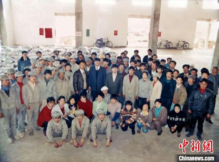 1995年2月5日,刘永好看望西昌希望饲料厂员工时所拍合影。受访者供图