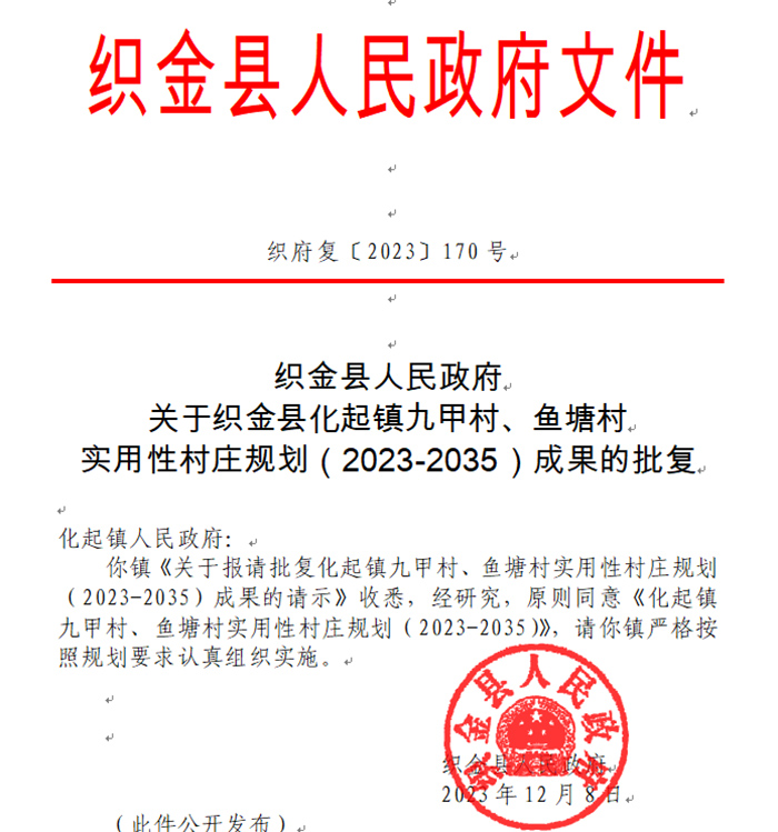 织金县人民政府对村庄规划的批复文件