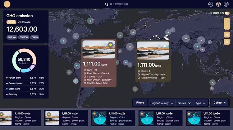 全球重点行业设施碳排放溯源平台界面